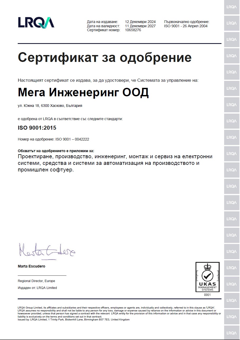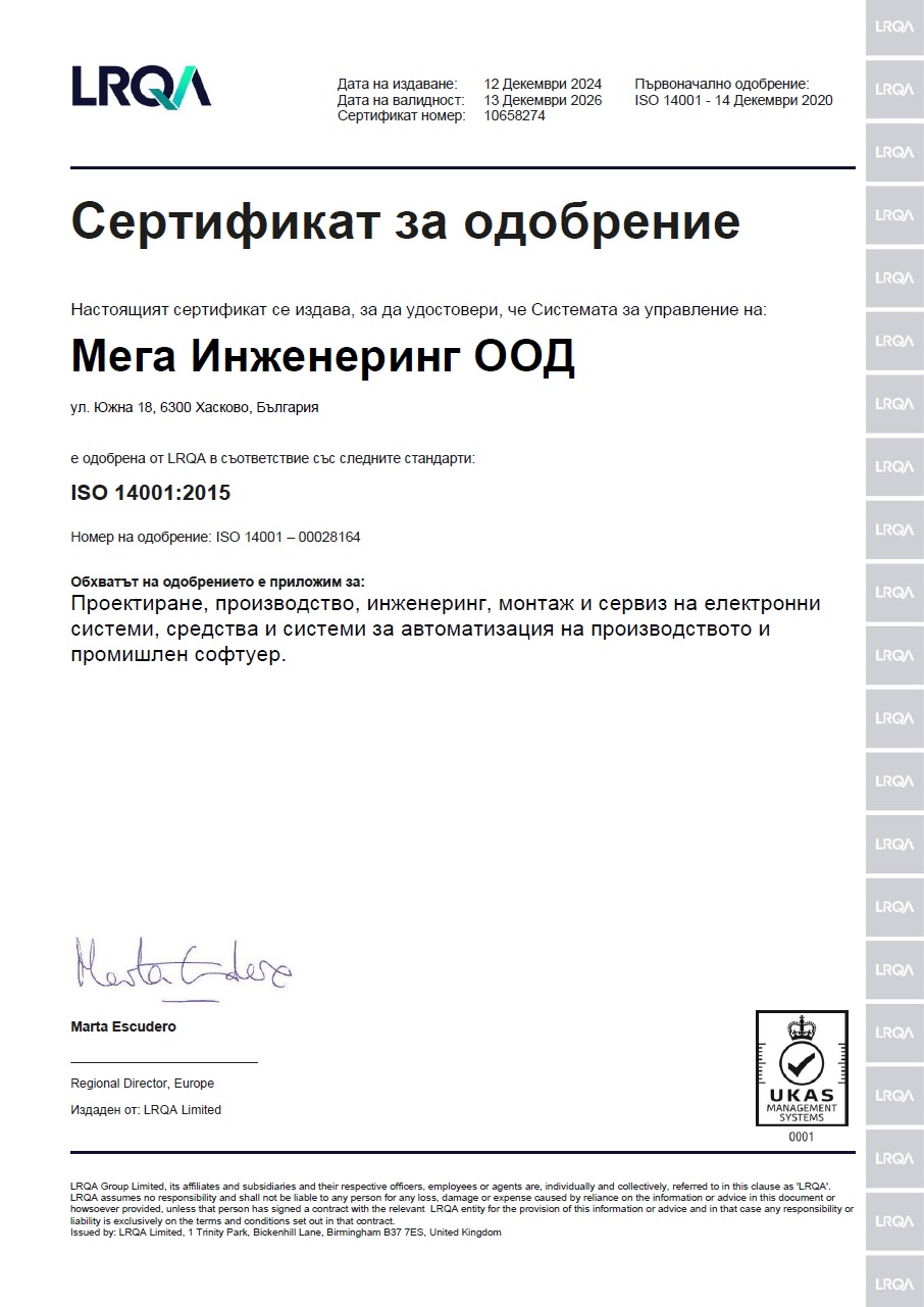 Политиката по качеството и околната среда се определя от Управителния съвет на фирмата и е задължителна за всички негови членове и за работещите във фирмата.